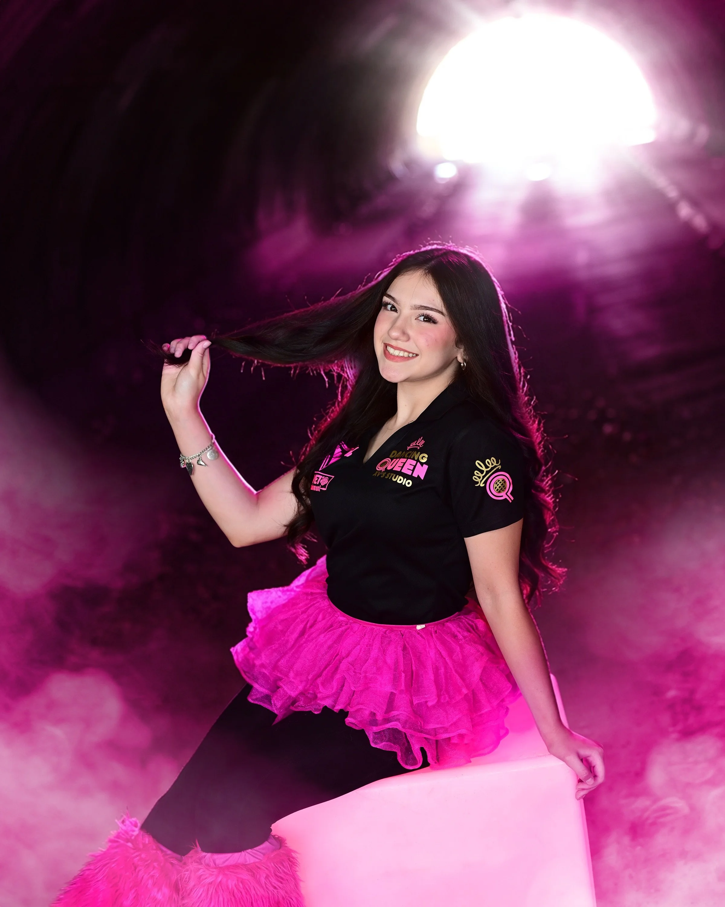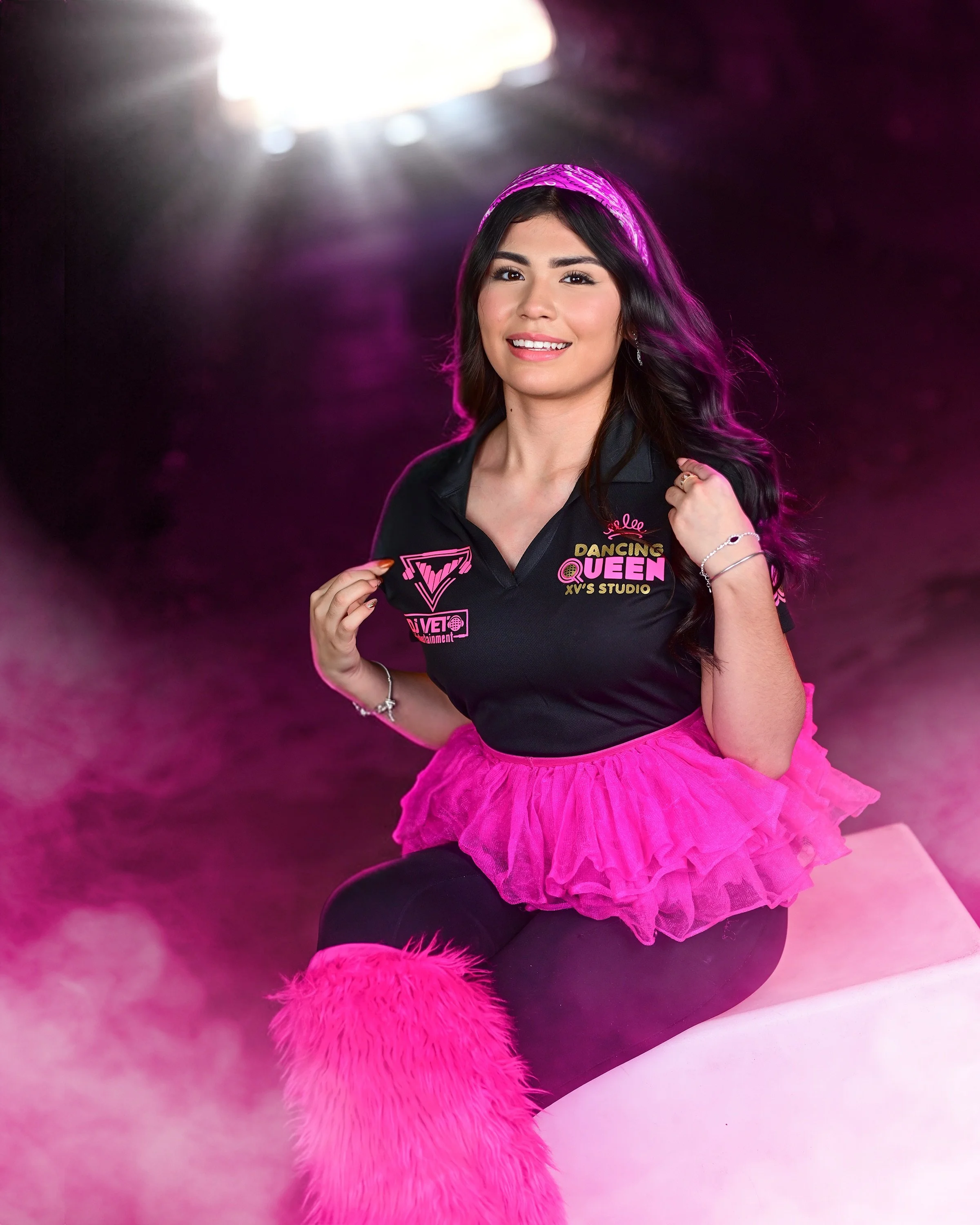 Hey! I’m Hannah — KWEEEN 😛. I’ve been with the team since 14. I was shy at first, but this place changed me. I’ve made great memories, met amazing people, and loved the trips 💗. I love seeing each quinceañera shine on her day 🙃. Advice to future XV girls: your only job is to have fun—smile and dance all night! Our team works hard every weekend and loves dancing with friends. Even the shyest people open up here—I promise 😛. Love my PINKTEAM—thank you! 😃